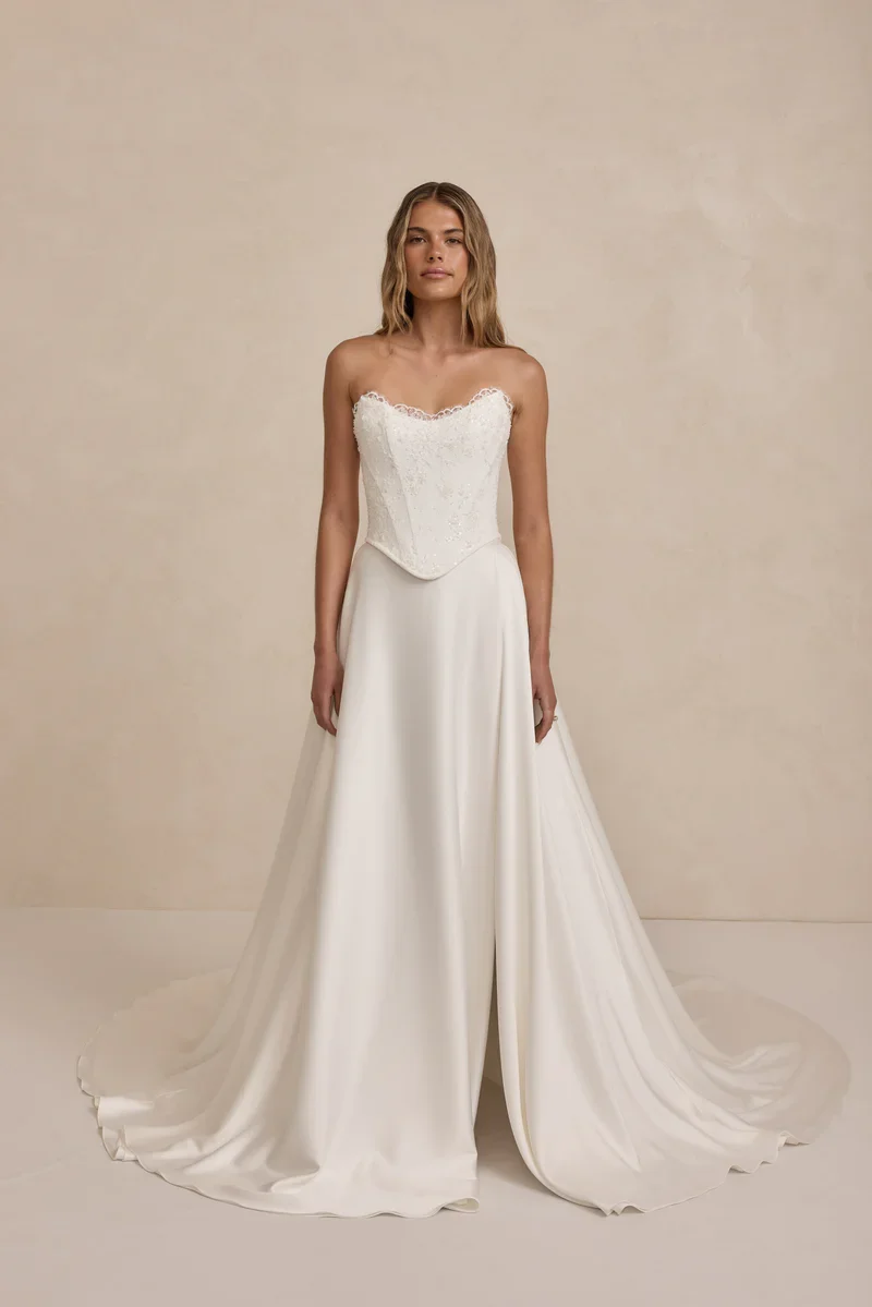 Made with Love is an Australian luxury bridal brand, known for it’s effortlessly chic, quality made and distinctly personable bridal gowns. Designed by Carla Jenkins, MWL has revolutionised the bridal world by creating beautiful and modern dresses for everyday, natural beauties. Known for their daring V necklines and plunging low backs as well as luxurious French crepe dresses.