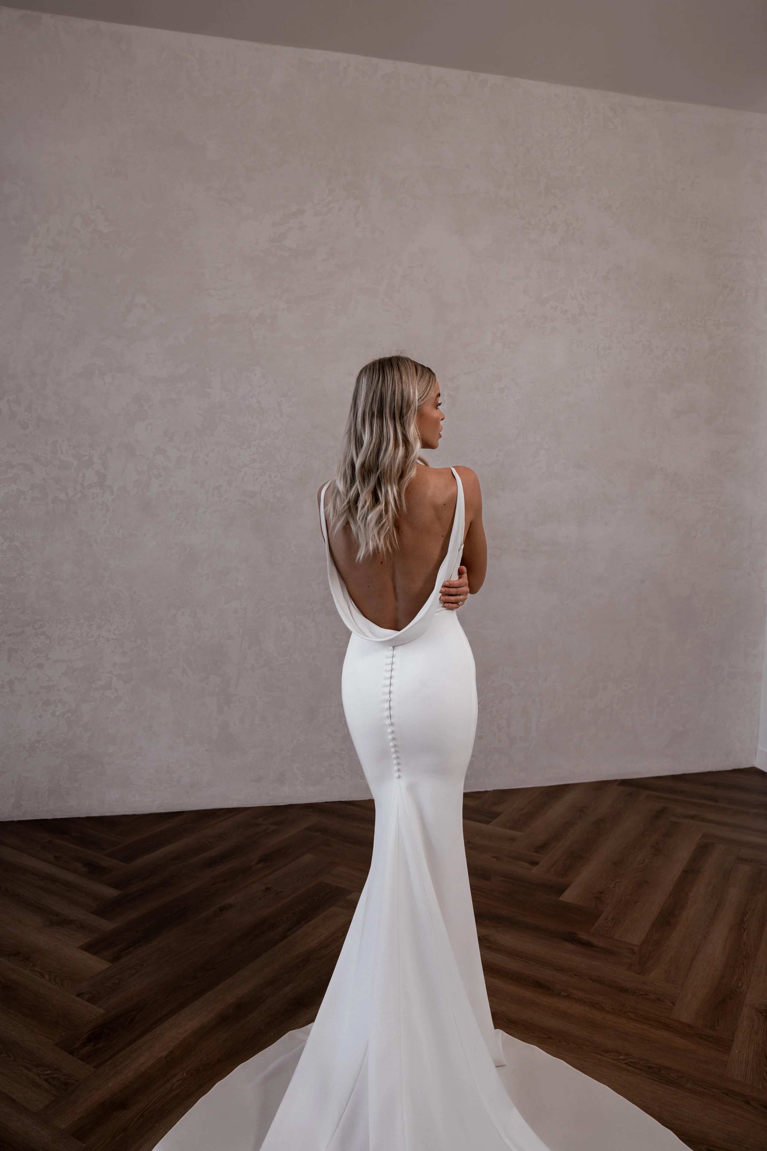Austin puts a modern twist on one of MWL's most classic designs and combines the best design elements of all of our favourites into one timeless, flattering and sexy crepe beauty! This iconic dress is the perfect blend of elegance and allure, featuring a delicate drape through the waistline to add shape to her sleek, figure-hugging silhouette. Her signature cowl back elongates and flatters every shape.